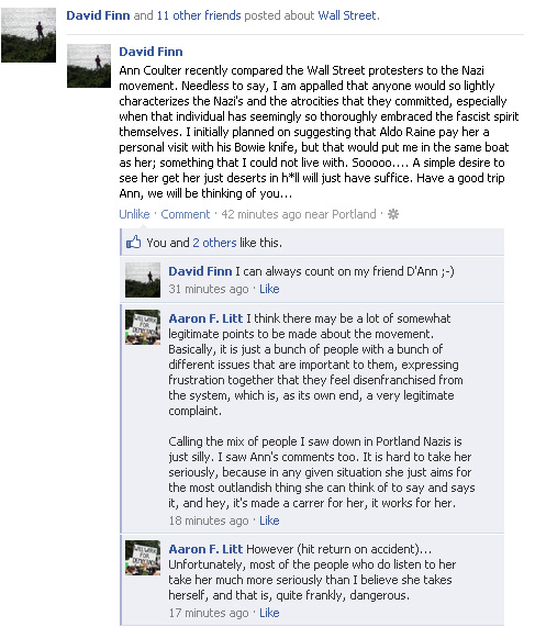 As for Ann Coulter's comments in this clip, here are some words from Facebook...